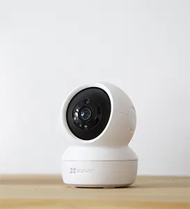 Kamera Wi-Fi indoor dengan fitur pan & tilt, deteksi gerak otomatis, serta pengontrolan dari smartphone.